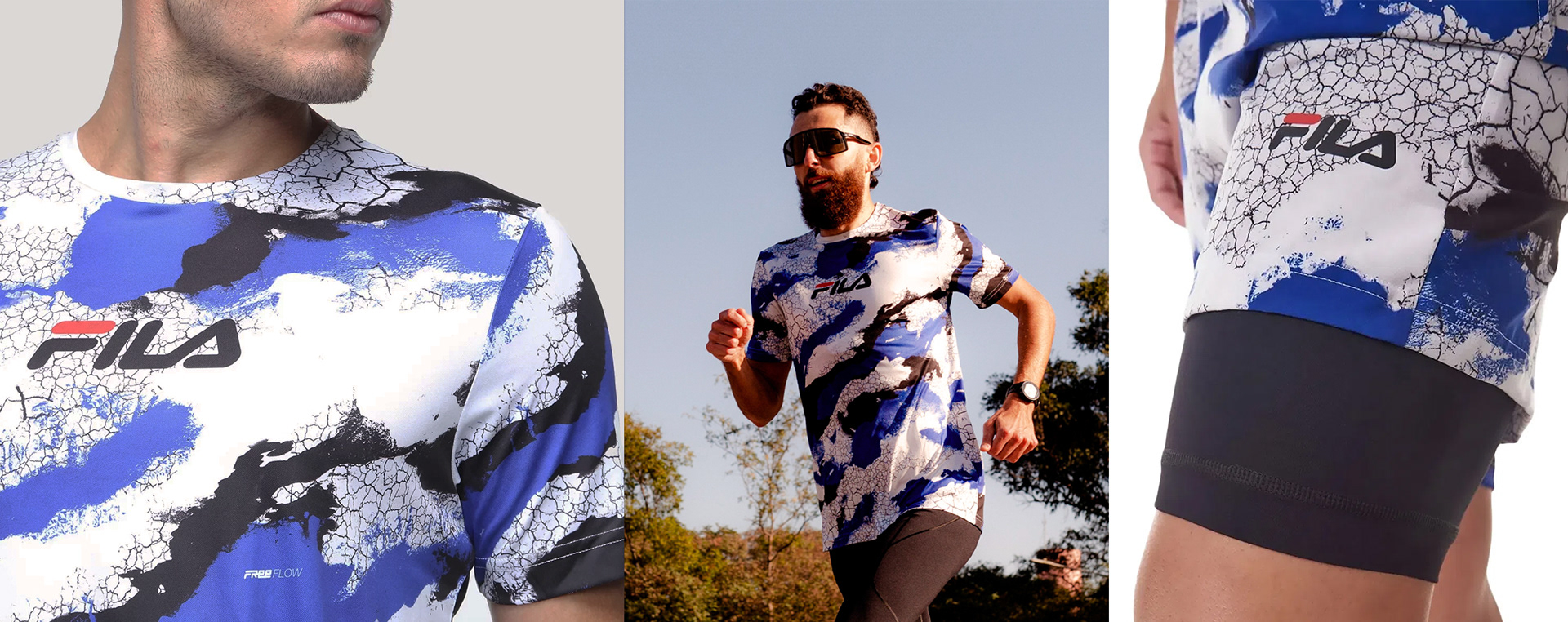 Design gráfico de estampas e superfícies para as linhas de performance da Fila